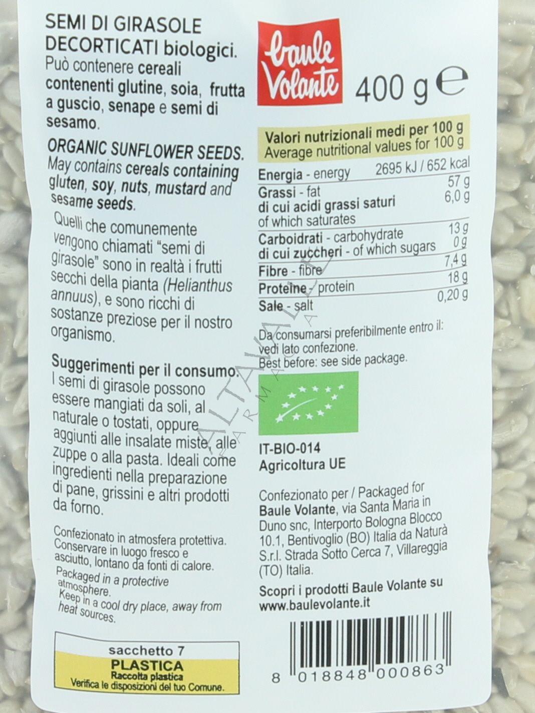 Baule Volante Semi di Girasole Decorticati sono alimenti biologici,
