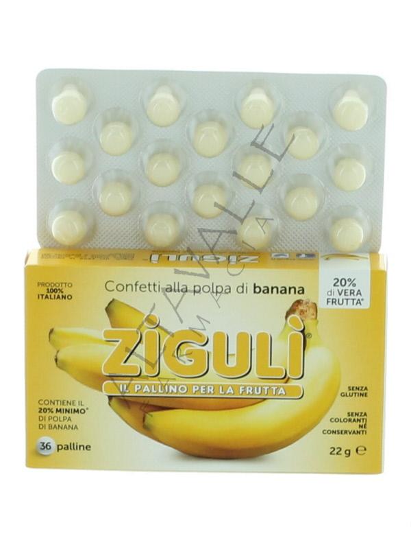 Zigulì Confetti al succo di banana contiene il 20% di succo di banana;