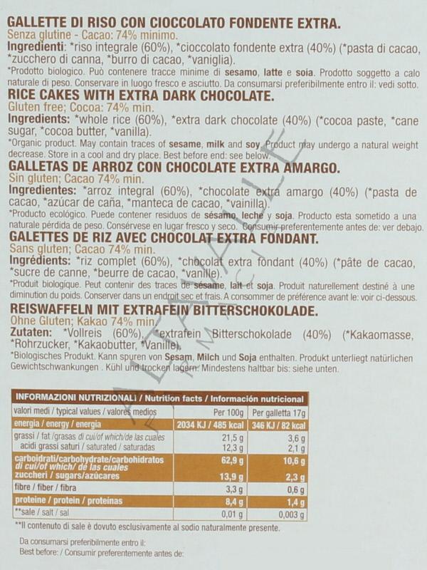 SARCHIO GALLETTE DI RISO CON CIOCCOLATO FONDENTE EXTRA
