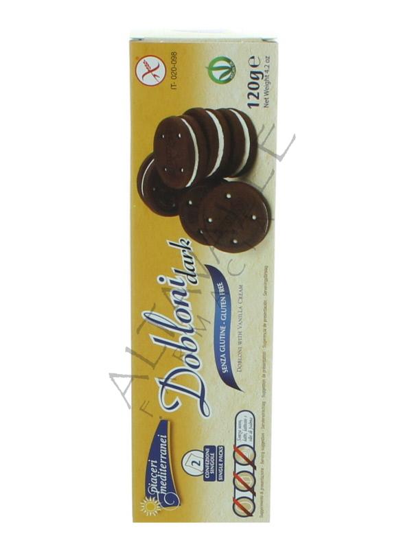 Piaceri Mediterranei Dobloni Dark, sono biscotti con crema alla vaniglia tra due friabili biscotti al cacao;