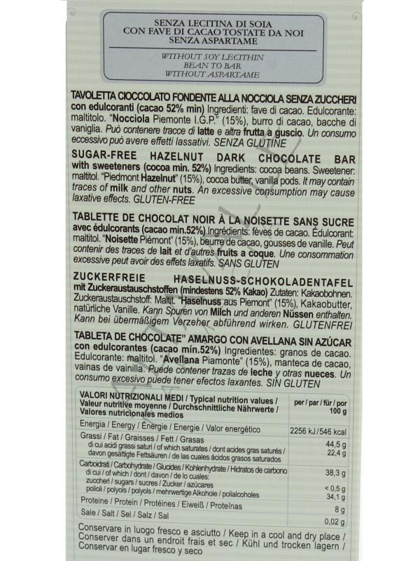 - dolcificata con maltitolo, per gustare appieno il sapore naturale del cacao