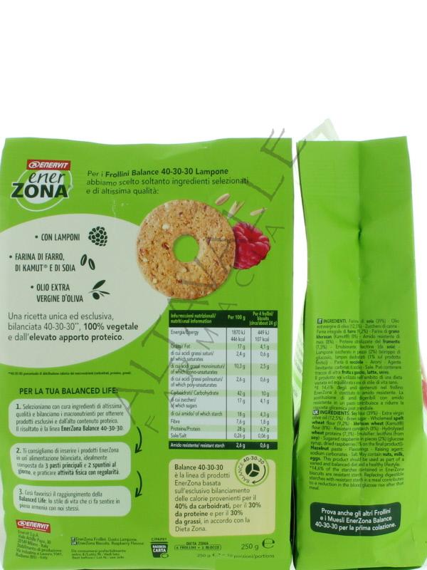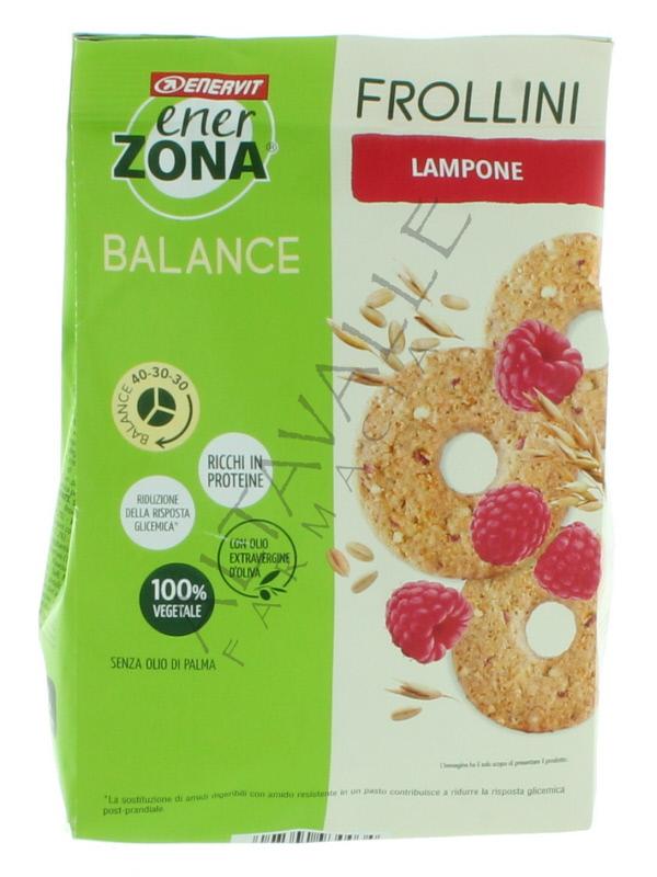 Enerzona Frollini Lampone con lamponi, farine di farro, kamut e soia, con olio extravergine d'oliva, 100% vegetale,