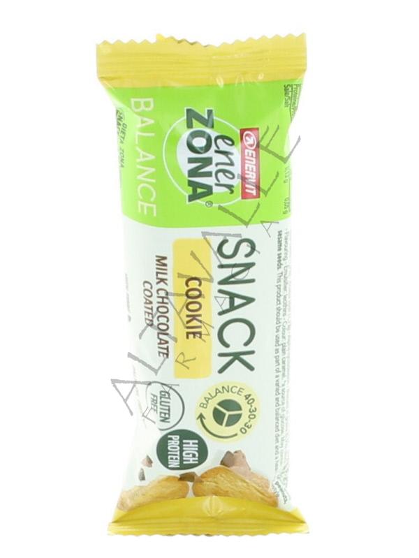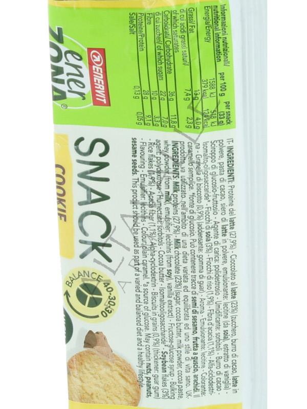 Enerzona Snack Cookie barretta doppio strato con pezzi di biscotto, ricoperta di cioccolato al latte,