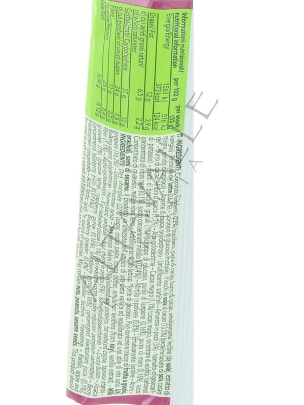 Enerzona Snack Crunchy Berries barretta doppio strato (croccante e morbido) ai frutti di bosco e cacao, ricoperta di cioccolato fondente,