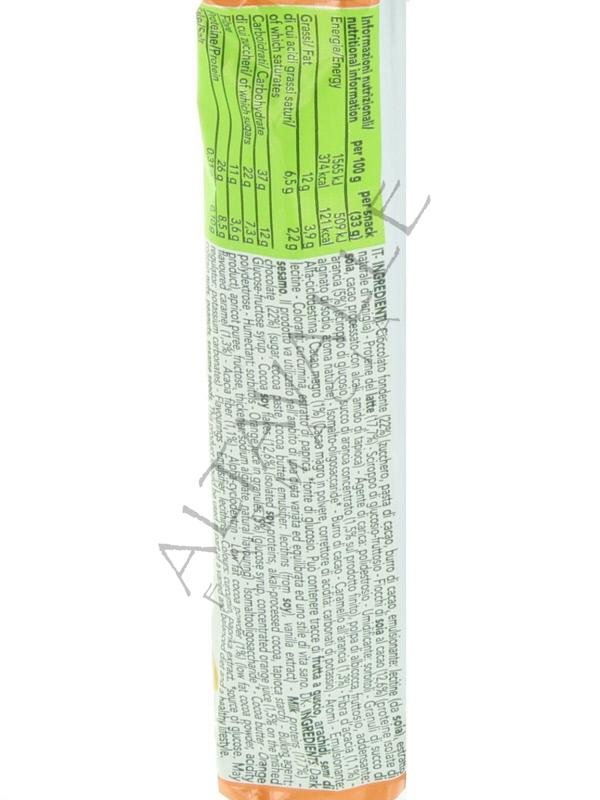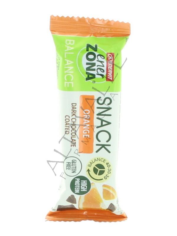 Enerzona Snack Orange barretta doppiostrato (croccante e morbido) all'Arancia e cacao, ricoperta di cioccolato fondente,