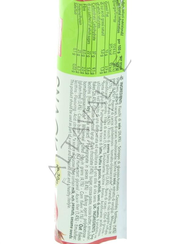 Enerzona Snack Superfruit barretta al melograno e cereali, con base di cioccolato fondente, non ricoperta, 100% vegetale,