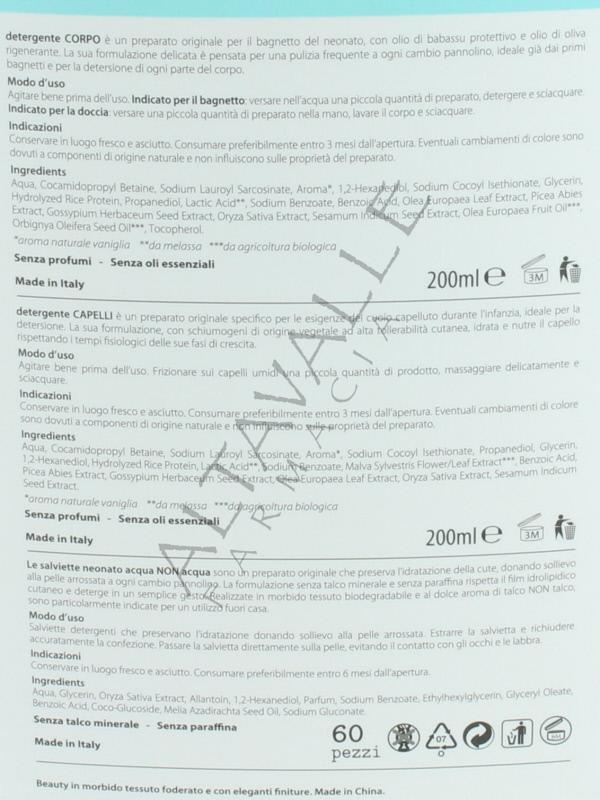 detergente corpo, detergente capelli, saviettine