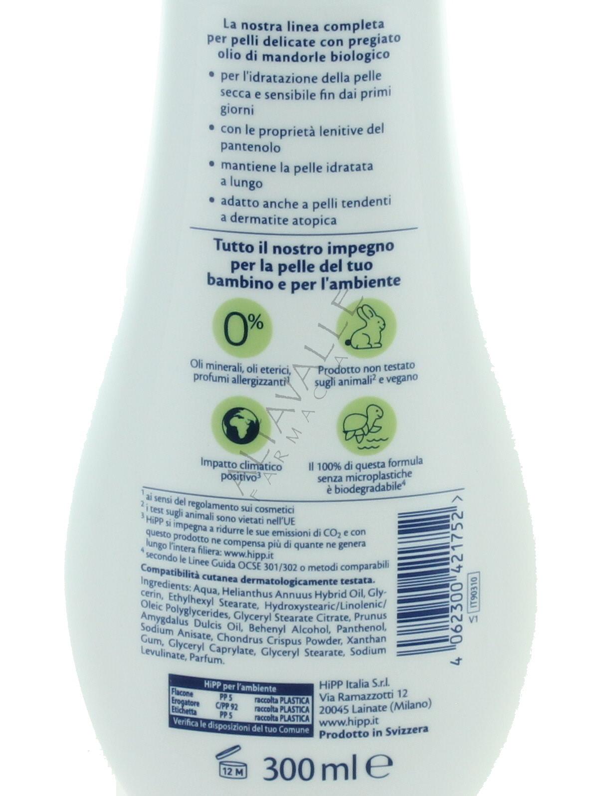 Hipp Latte Nutriente è formulato per la pelle secca e sensibile con olio di mandorle dolci biologico,