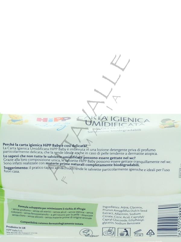 Hipp Carta Igienica Umidificata si presenta in salviettine biodegradabili, è impregnata con una lozione per la pulizia senza profumo, ideale per la pelle sensibile che è soggetta a neurodermatite;