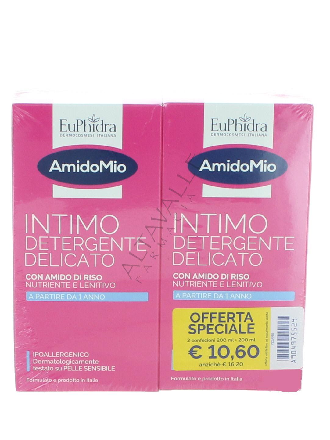 Euphidra Amido Mio Detergente Intimo idratante e delicato, formulato appositamente per essere applicato anche sulle zone intime e sui punti in cui la pelle è più sensibile;