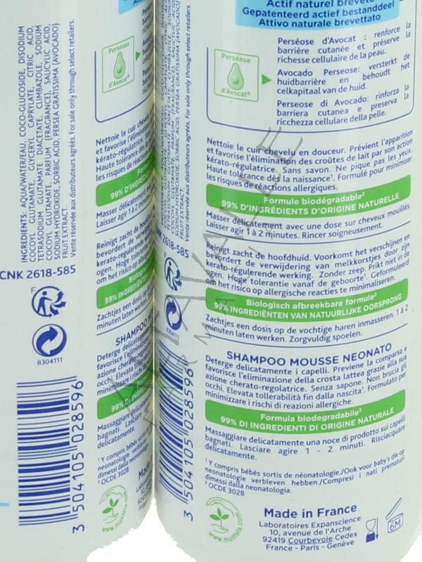 Shampoo Mousse Mustela è pecificamente formulato per essere utilizzato fin dalla nascita, è ideale per prevenire la crosta lattea; i capelli sono perfettamente puliti senza aggredirli, grazie alla presenza di tensioattivi delicati;