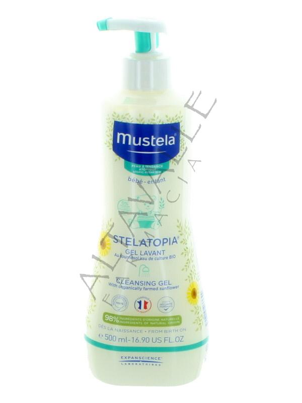 Mustela Stelatopia gel detergente, specificamente formulato per la pelle a tendenza atopica fin dalla nascita, deterge la pelle senza aggredirla, grazie ad un’associazione di principi attivi innovativi di origine naturale, dalle proprietà lenitive, riduce la sensazione di prurito e di irritazione;
