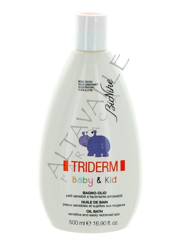 Bionike Triderm Baby&Kid Bagno Olio è un olio da bagno dalla formulazione non schiumogena, che deterge la cute sensibile di neonati e bambini senza aggredirla, rispettandone il naturale film idrolipidico;