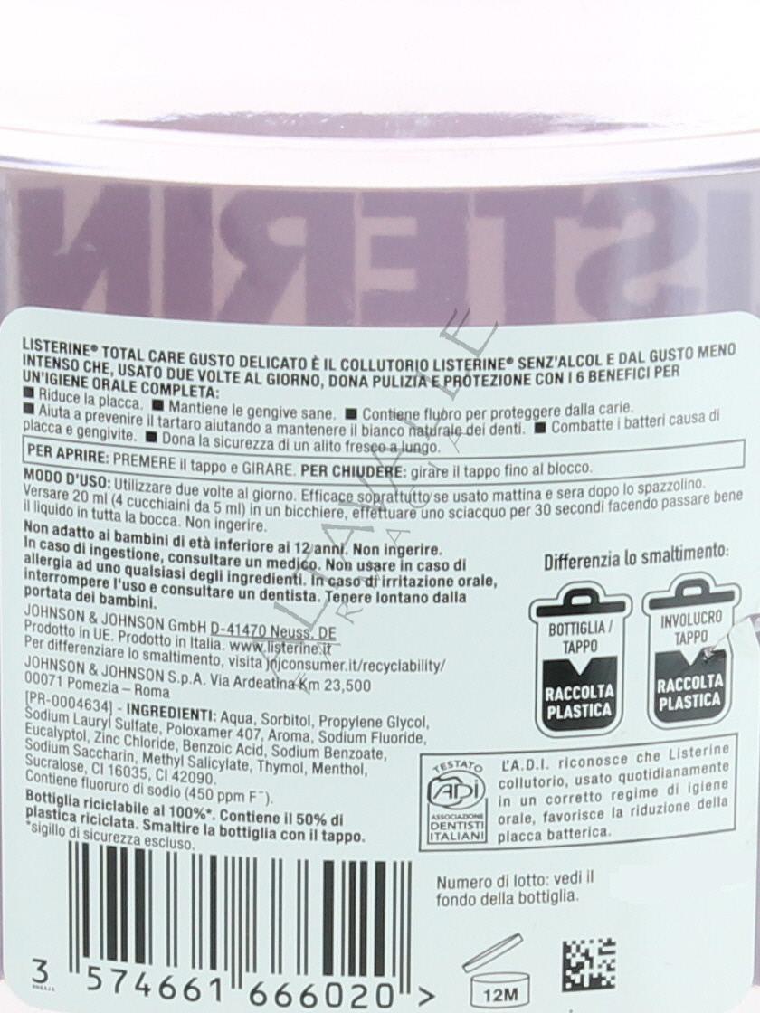Listerine Total Care Zero colluttorio senza alcool al gusto di menta delicata;