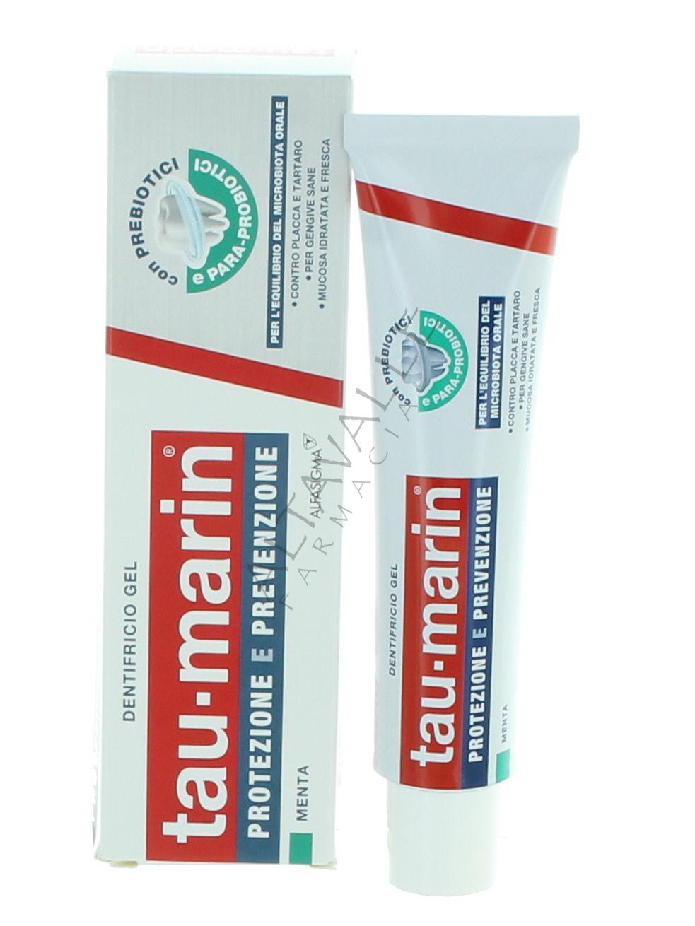 Taumarin Dentifricio Gel gusto menta protezione e prevenzione con prebiotici e para-probiotici per l'equilibrio del microbiota orale;