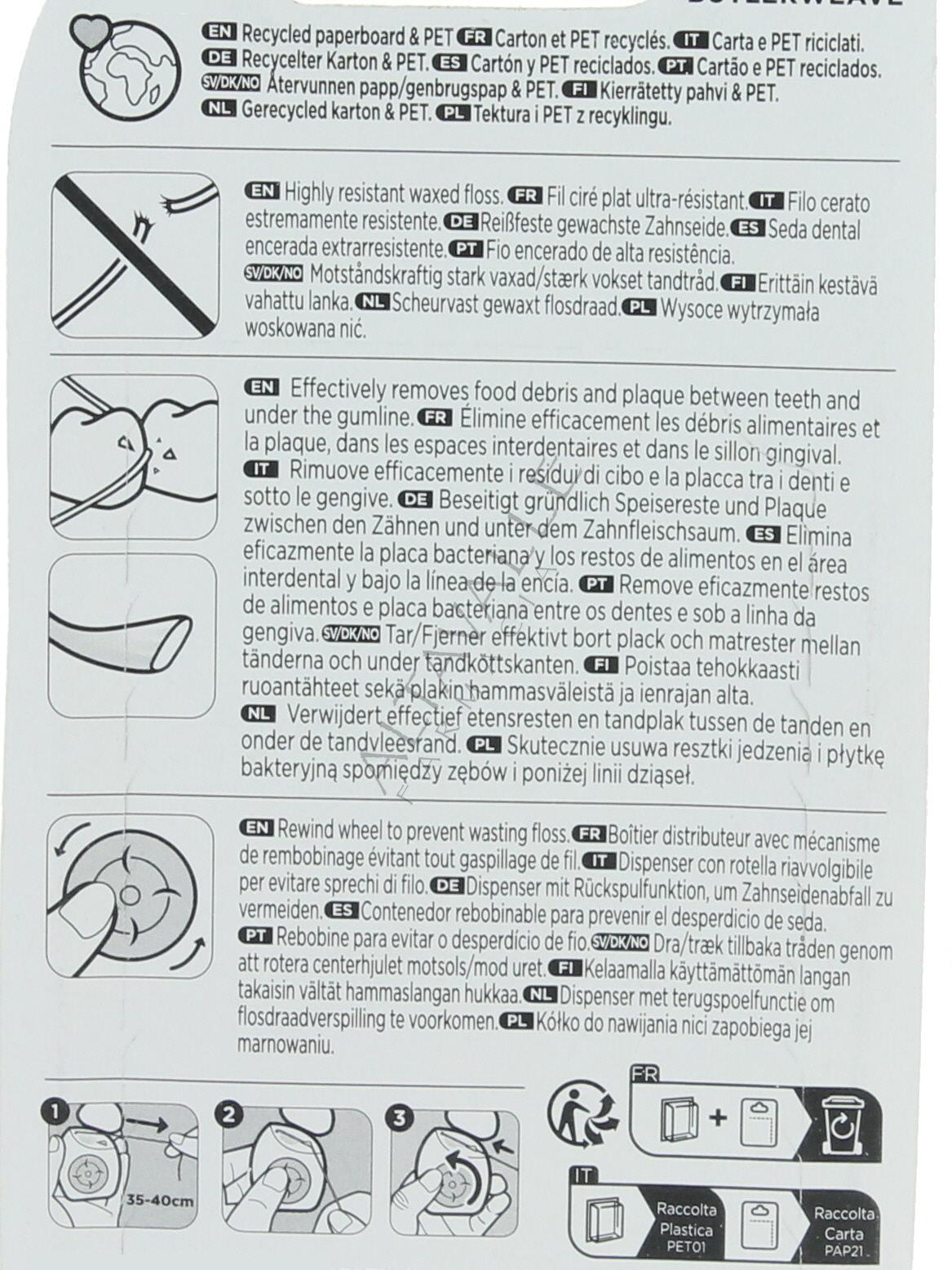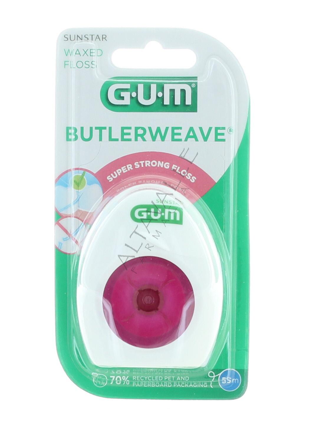 Gum Butlerweave Filo Interdentale cerato aiuta a pulire aree importanti che gli spazzolini da denti non possono raggiungere, come tra i denti e sotto il bordo gengivale;