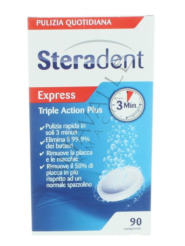 Steradent Express Tripla Azione Plus sono compresse indicate per la pulizia delle protesi dentarie;