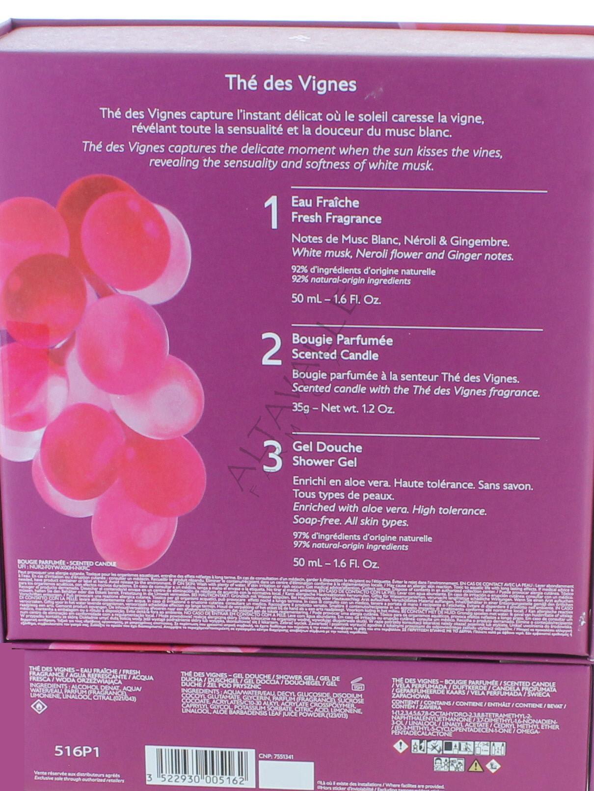Caudalie Cofanetto The des Vignes contiene l'Acqua Fresca con in omaggio The des Vignes Gel Doccia e The des Vignes Candela entrambi in formato mini.