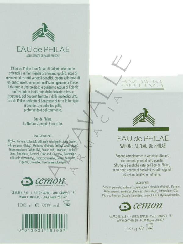 Eau de Philae acqua di colonia purissima alle piante officinali, ai fiori freschi e oli essenziali, una soluzione alcolica profumata, dal bouquet fruttato, ricco di fragranza, rinfrescante e tonificante, dalle molteplici virtù benefiche;
