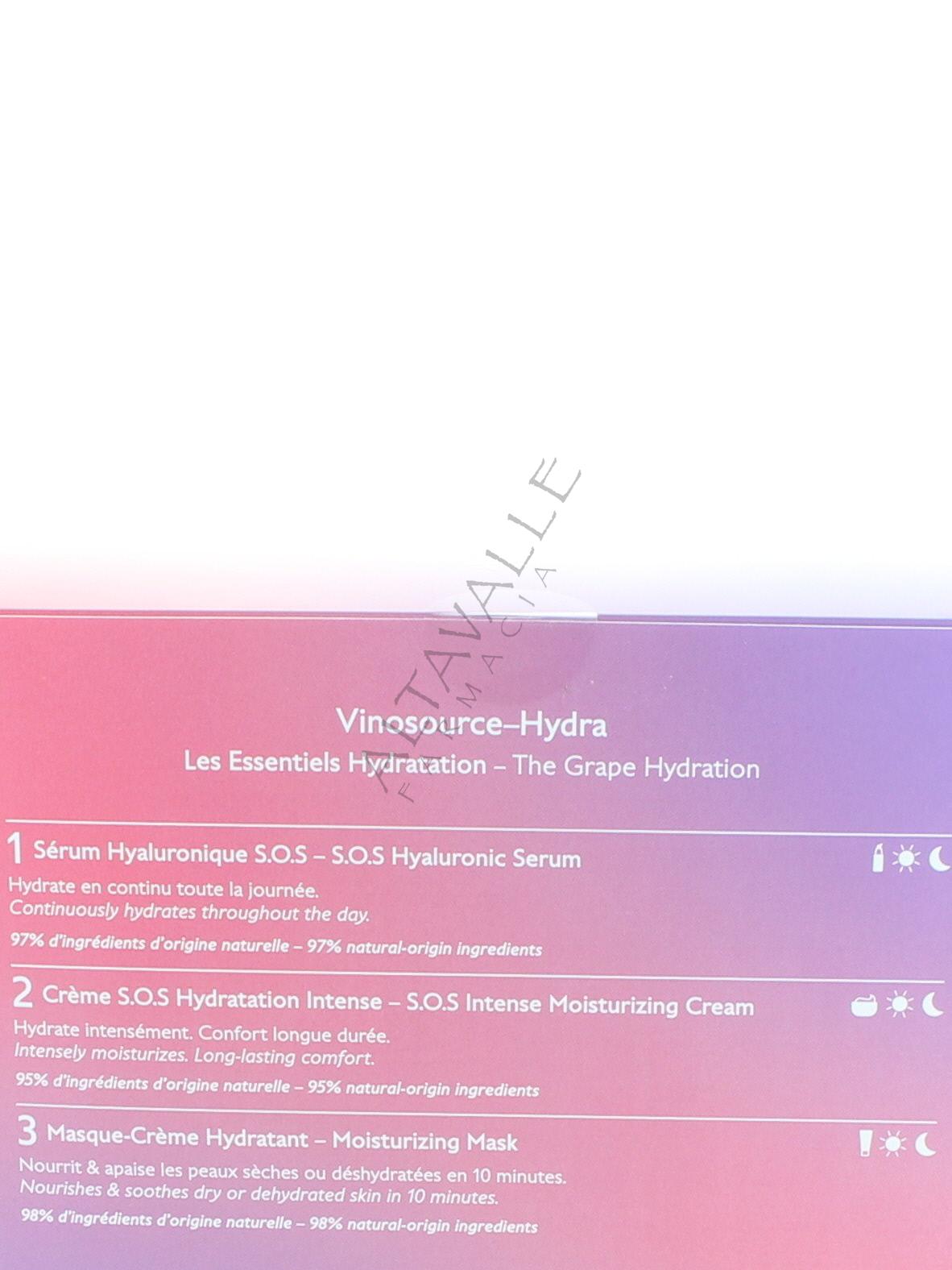 Caudalie Cofanetto Vinosource-Hydra Crema S.O.S. Idratanzione Intensa contiene la Crema con in omaggio Siero e Maschera-Crema entrambi in formato mini.