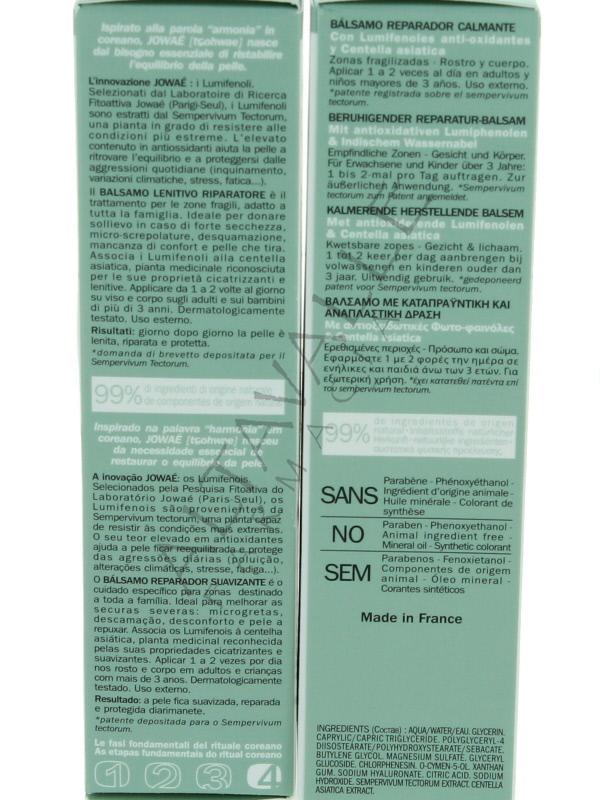 Jowaé Balsamo Lenitivo Riparatore per Zone Fragili ai Lumifenoli antiossidanti e Centella Asiatica: lenisce, ripara e favorisce la rigenerazione della pelle;