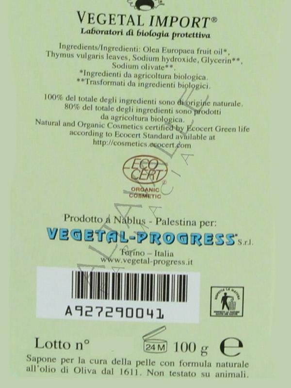 Nablus Sapone Tim Tim al Timo di Vegetal Progress è un sapone 100% vegetale, prodotto in Palestina con materie prime da agricoltura biologica, certificati da Ecocert;