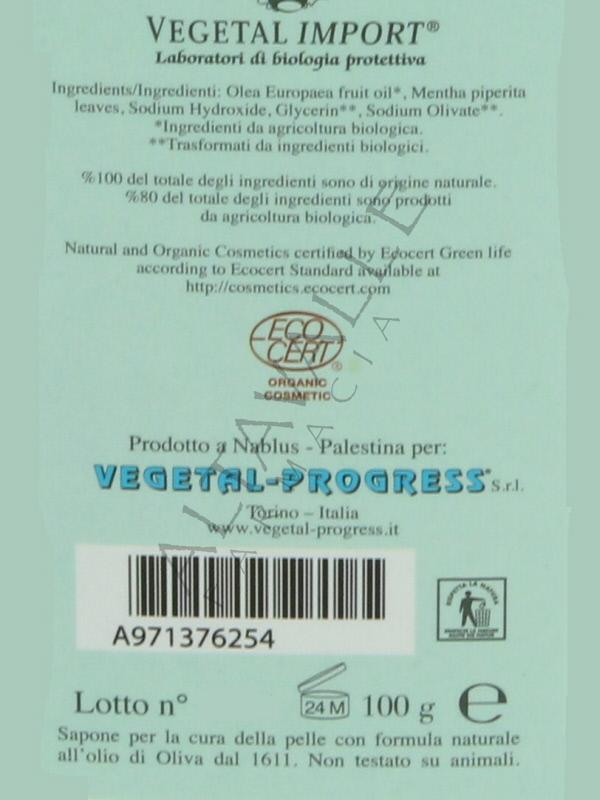 Nablus Sapone Fil-Fly alla Menta di Vegetal Progress è un sapone 100% vegetale, prodotto in Palestina con materie prime da agricoltura biologica, certificati da Ecocert;
