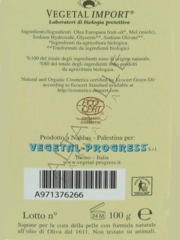 Nablus Sapone Pauper al Miele di Vegetal Progress è un sapone 100% vegetale, prodotto in Palestina con materie prime da agricoltura biologica, certificati da Ecocert;