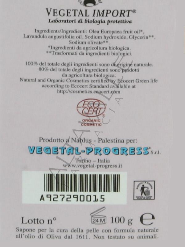 Nablus Sapone Rio-Blu alla Lavanda di Vegetal Progress è un sapone 100% vegetale, prodotto in Palestina con materie prime da agricoltura biologica, certificati da Ecocert;