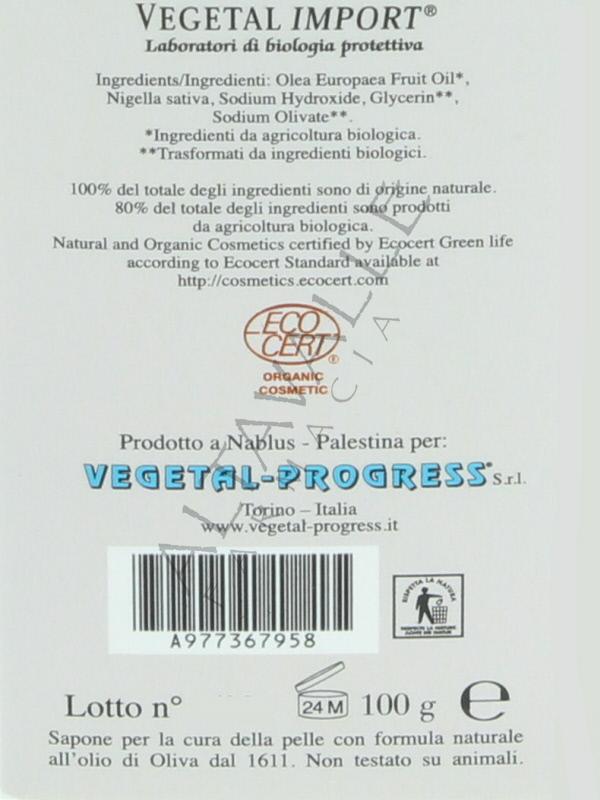 Nablus Sapone Cumino Nero al Cumino Nero di Vegetal Progress è un sapone 100% vegetale, prodotto in Palestina con materie prime da agricoltura biologica, certificati da Ecocert;