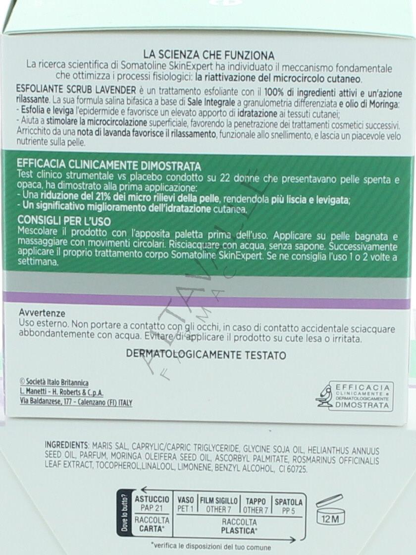 Somatoline Scrub Lavanda con aroma di lavanda è un trattamento esfoliante e levigante;
