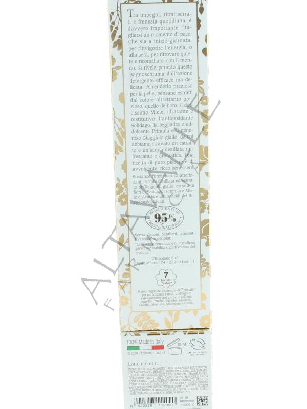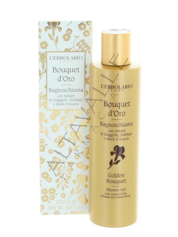 L'Erbolario Bouquet D'Oro Bagnoschiuma con estratti di Giaggiolo, Solidago e Miele d’Acacia lascia la pelle idratata e protetta;