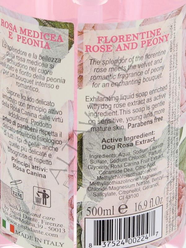 Romantica Rosa Medicea e Peonia Sapone Liquido detergente estremamente delicato;