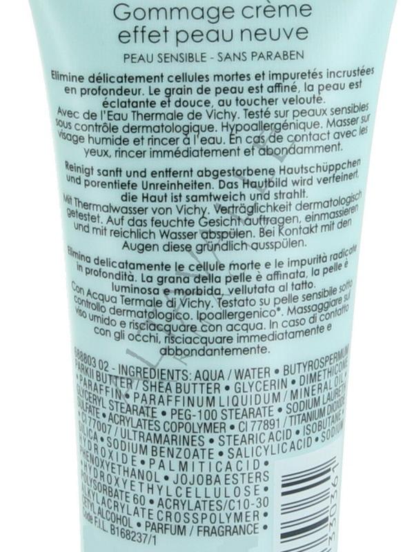 Vichy Pureté Thermale Crema Esfoliante contiene microperle di jojoba che rimuovono le cellule morte e le impurità per una profonda pulizia dei pori;