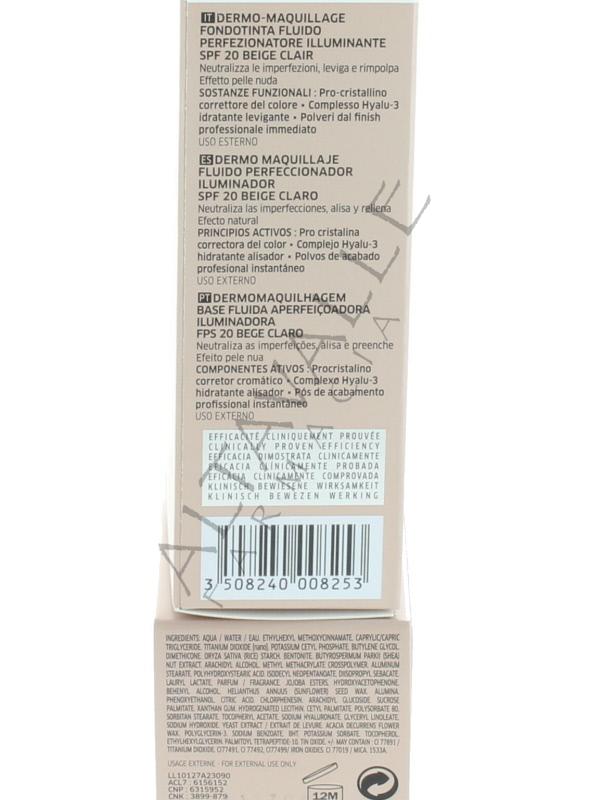 Lierac Fondotinta Fluido Perfezionatore Illuminante 01 Beige Clair, con Spf 20,