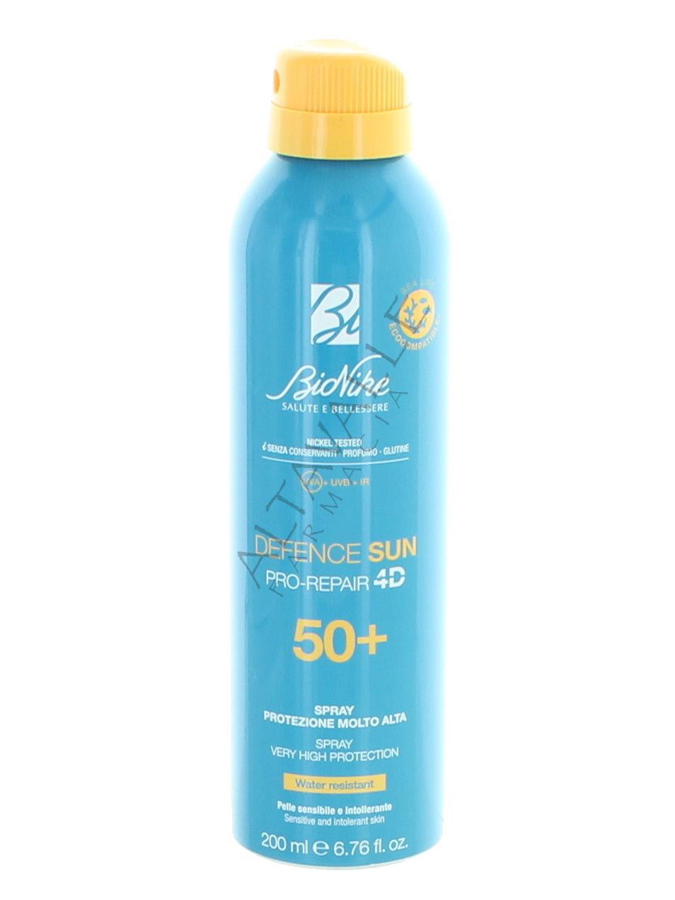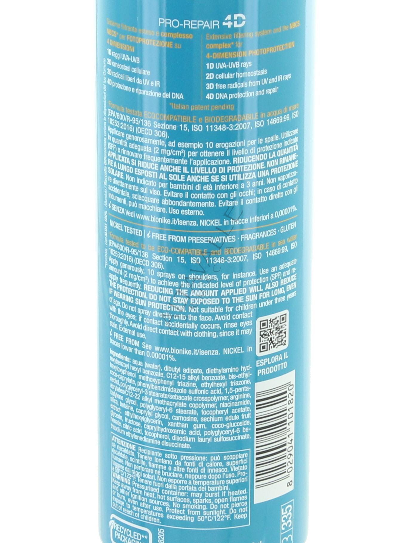 Bionike Defence Sun PRO-REPAIR 4D Latte Spray SPF50+ Trasparente resistente all'acqua, per pelle sensibile e intollerante;