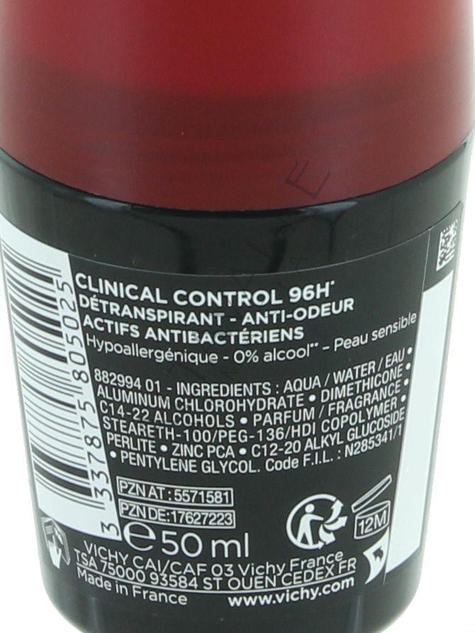 Vichy Homme Deodorante Roll-on Clinical Control 96ore anti -traspirante, anti-odori, con attivi antibatterici;