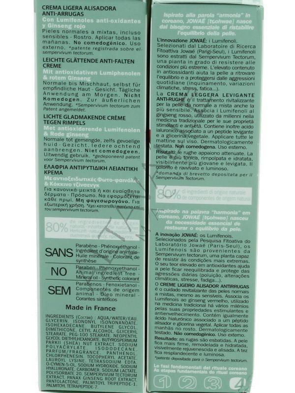 Jowae Crema Levigante Antirughe Leggera ai Lumifenoli antiossidanti e Ginseng Rosso: leviga tonifica e idrata, la pelle è più tonica e rimpolpata, il colorito è uniforme e luminoso;