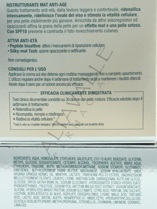 Somatoline Viso Volume Effect Crema Mat Giorno Ristrutturante un trattamento anti-age dedicato alle pelli mature, pelli da normali a miste, con SPF10 costituito da filtri chimici UVA e UVB per un’azione protettiva di base dal fotoinvecchiamento;