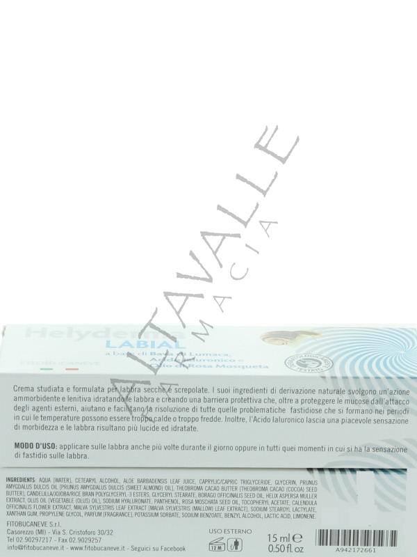 Helyderma Crema Labbra per labbra secche e screpolate, con ingredienti di derivazione naturale, per un'azione ammorbidente e lenitiva, idrata le labbra e crea una barriera protettiva, protegge le mucose dall'attacco degli agenti esterni;