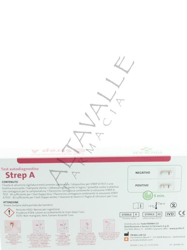 Test Strep A Profar è un test autodiagnostico immunocromatografico che rileva la presenza di antigeni specifici di Streptococco A grazie ad anticorpo coniugati con oro e incorporati nella striscia reattiva.