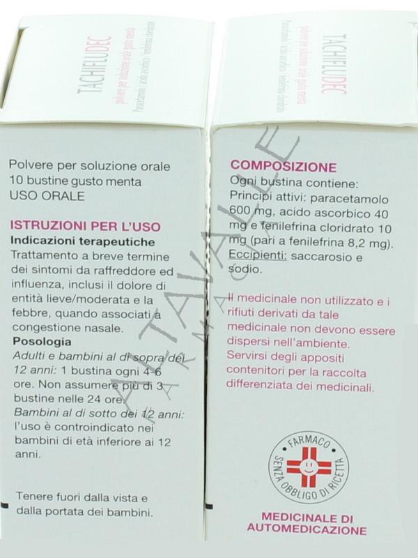 paracetamolo 600mg + acido ascorbico 40mg + fenilefrina 10mg