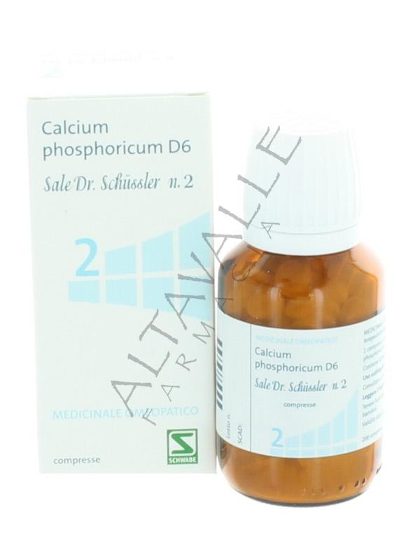 Sale di Schussler numero 2 Calcium Phosphoricum D6 è il Calcio fosfato acido (CaHPO4 .2H2O): il sale della struttura ossea; favorisce la crescita nei bambini, mantiene a lungo l'integrità della nostra ossatura, riduce la facilità alle fratture, aiuta la postura corretta evitando scoliosi, cifosi e lordosi sia negli adolescenti, sia negli anziani, evita le malformazioni ossee tipiche dell'età, favorisce una buona dentatura, evita le carie e mantiene i denti forti;