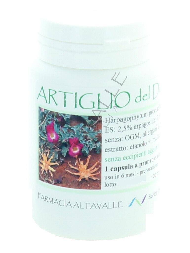 Capsule Artiglio del diavolo sono a base di estratto da radice di Harpagophytum procumbens con azione antinfiammatoria su ossa e articolazioni; riduce il dolore e migliora la motilità articolare e riduce la rigidità muscolare;