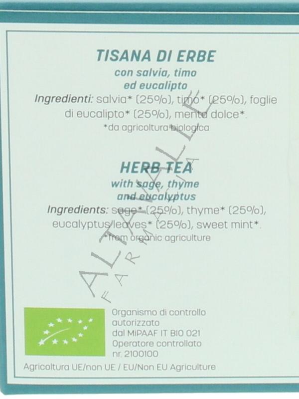 Reginadifiori Bio Canto della Sirena Tisana del Respiro con erbe officinali: salvia, timo ed eucalipto;