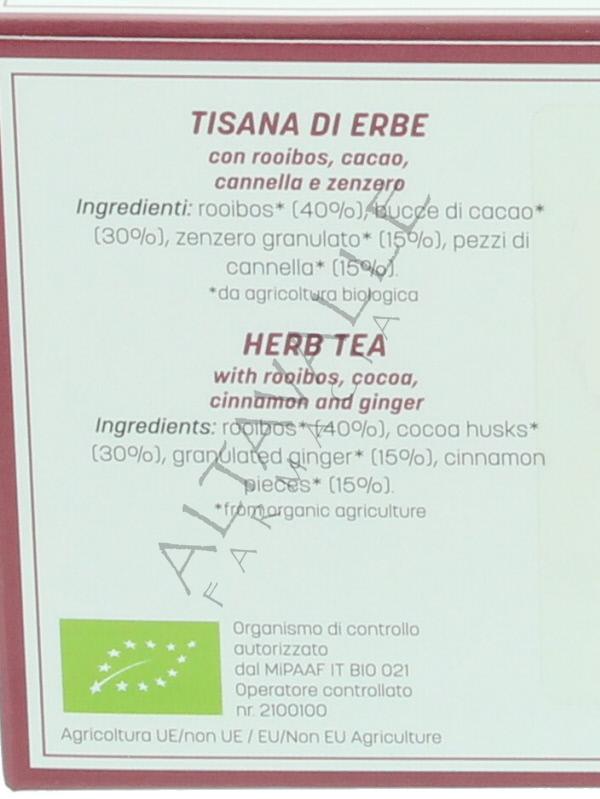 tisana biologica con rooibos, cannella e zenzero