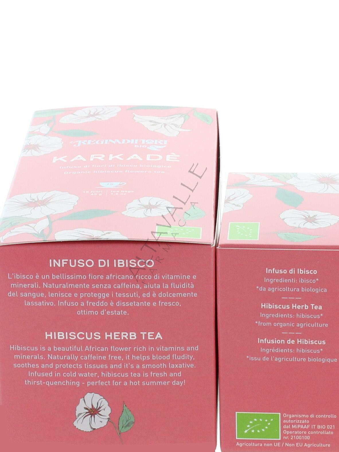 Reginadifiori Bio Karkade è un infuso di fiori di Ibisco da agricoltura biologica;
