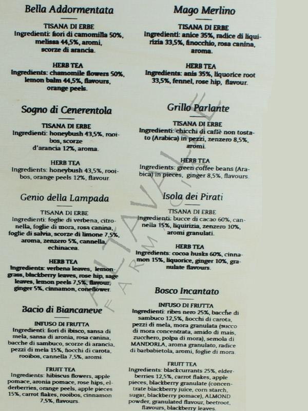 contiene 40 filtri con 8 gusti diversi di infusi e tisane,