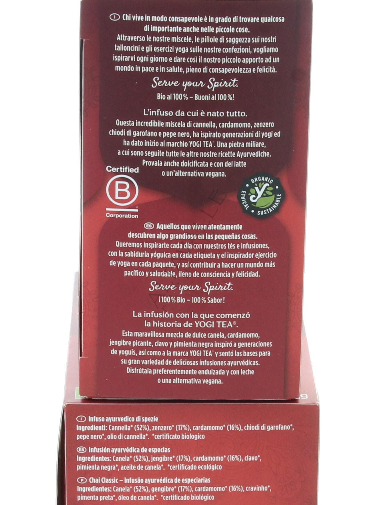 Yogi Tea Classic è un infuso con estratti di spezie;
