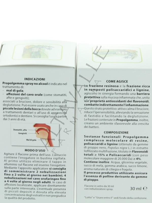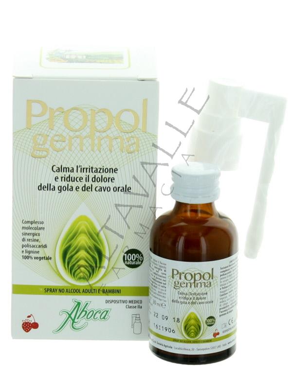 Aboca Propolgemma spray orale per bambini contiene un complesso molecolare composto da resine, polisaccaridi e lignine ottenuto dalle gemme di pioppo nero, dalla cui resina le api ricavano la propoli europea;